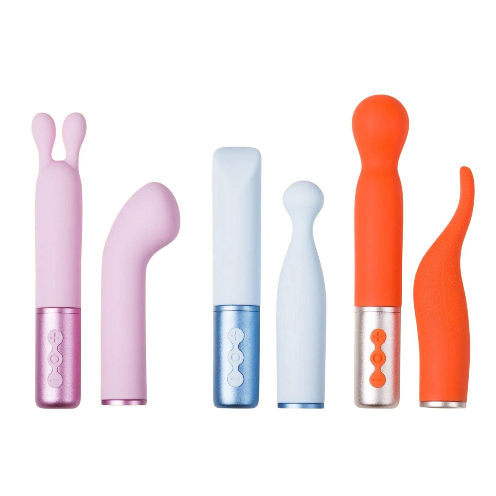 Este paquete combina dos masajeadores de clítoris clásicos en un solo dispositivo intercambiable, ofreciendo experiencias distintas según el cabezal que elijas.
