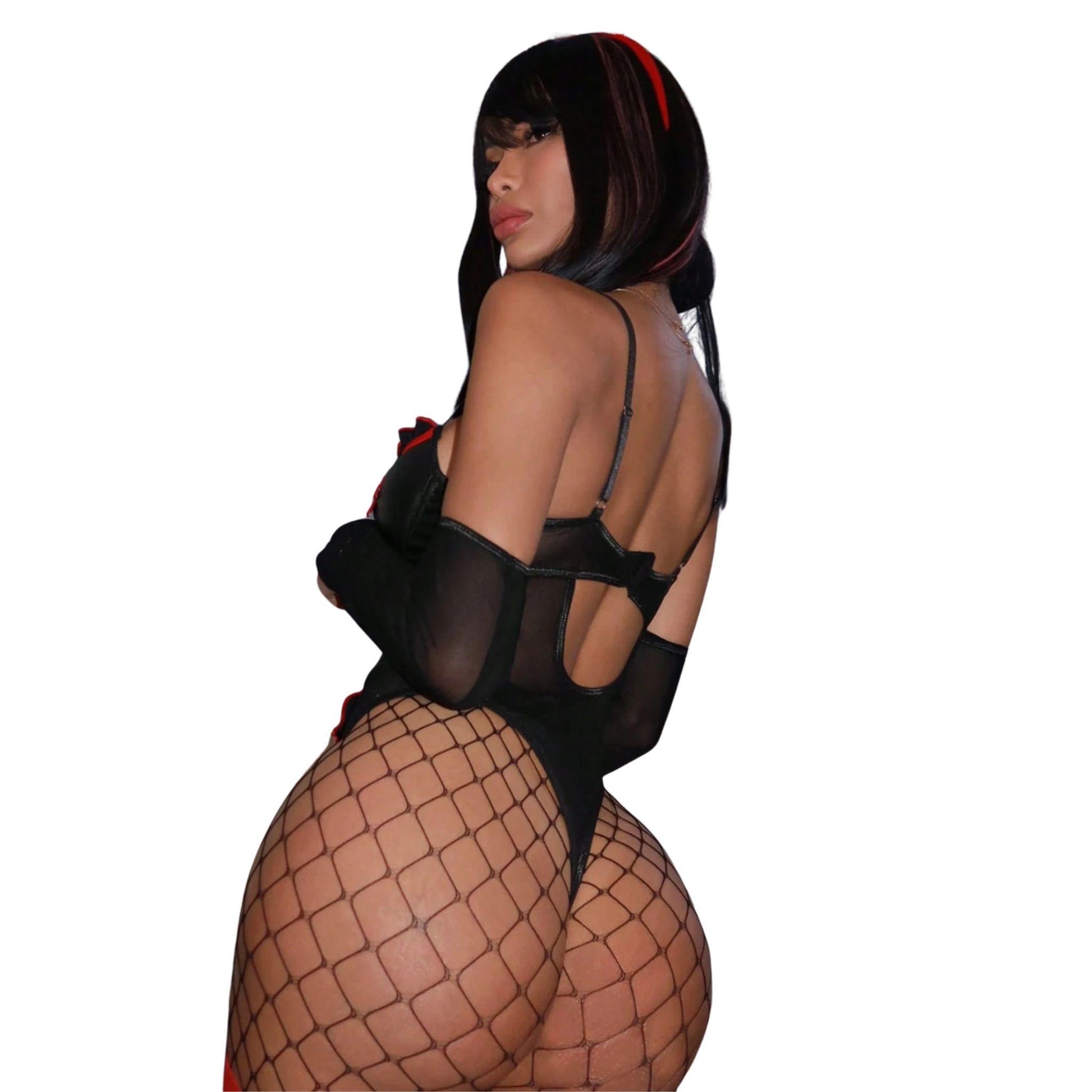Diseñado para juegos de rol, fiestas o momentos íntimos, este conjunto es ideal para mujeres que quieren explorar su lado más seductor con un look divertido, travieso y lleno de actitud.