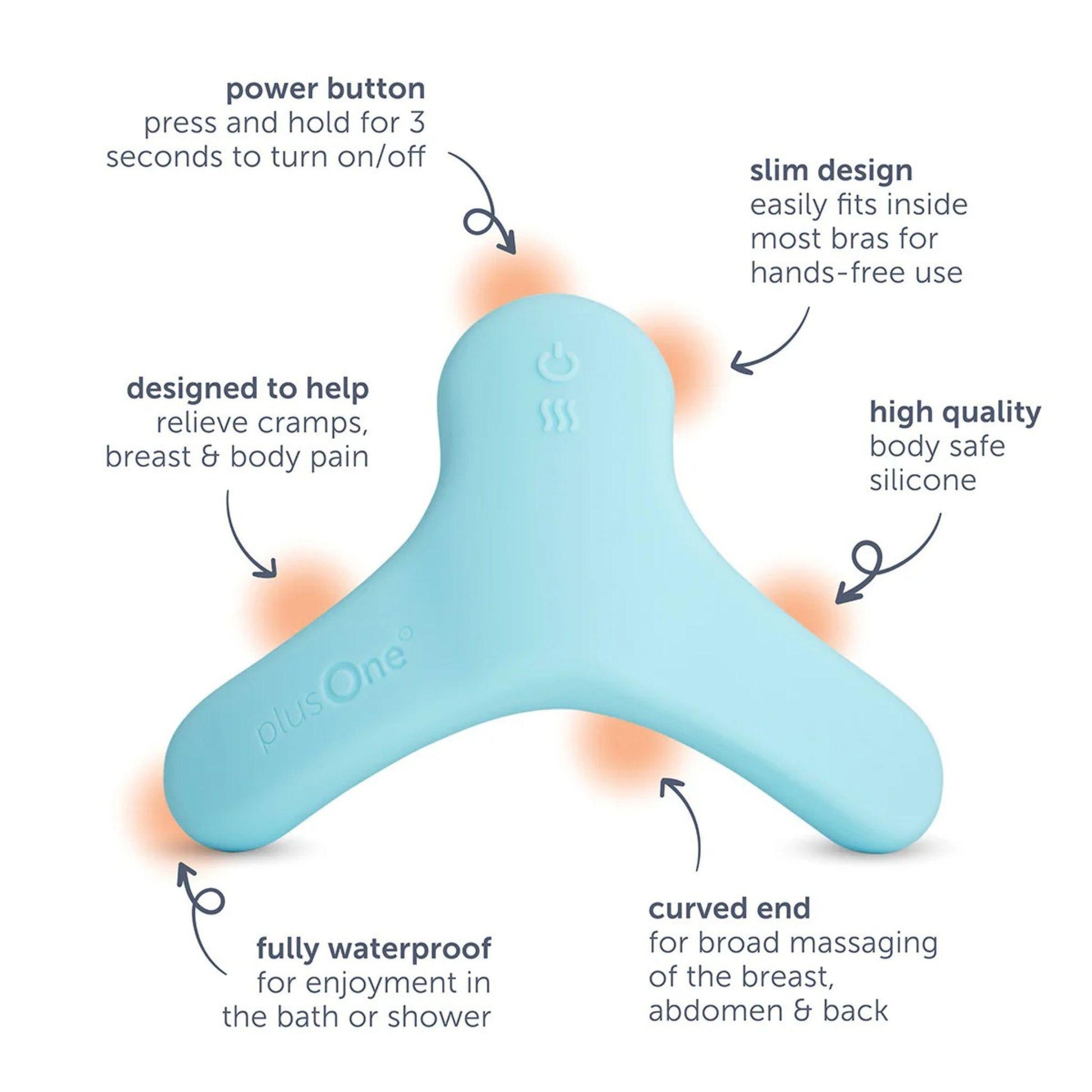 El Breast & Body Massager de Plus One es un aliado diseñado para acompañar a personas lactando, nuevas mamás o cualquiera que necesite apoyo para aliviar tensión, calambres o molestias corporales. Su forma delgada y curva permite un masaje dirigido y cómodo que ayuda a reducir molestias, favorecer la circulación y apoyar el bienestar diario.