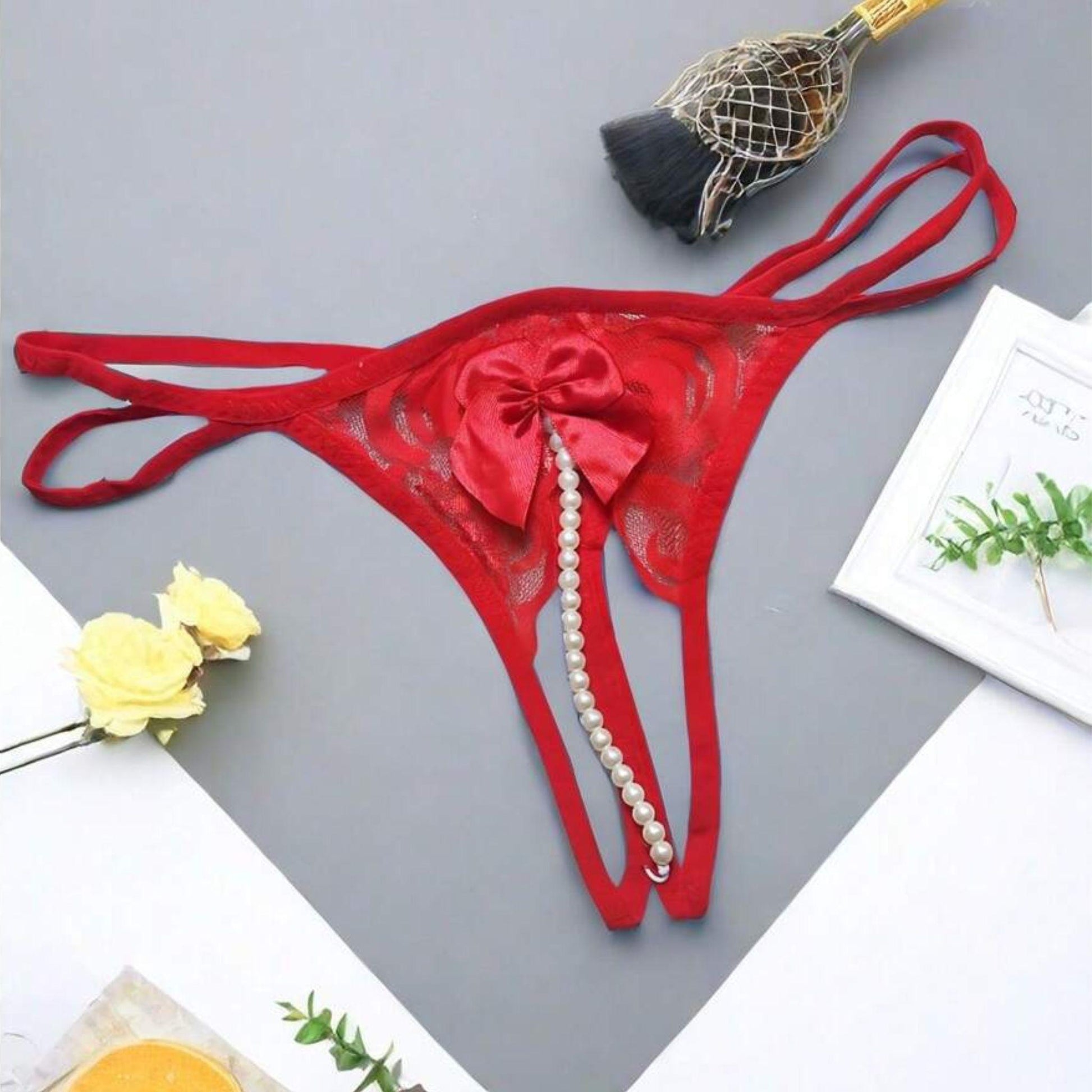 Un hilo rojo tan delicado como atrevido: encaje sensual, un lazo coqueto y detalles de perlas que elevan el look a pura fantasía🔥✨ Perfecto para sorprender, seducir y sentirte irresistible.