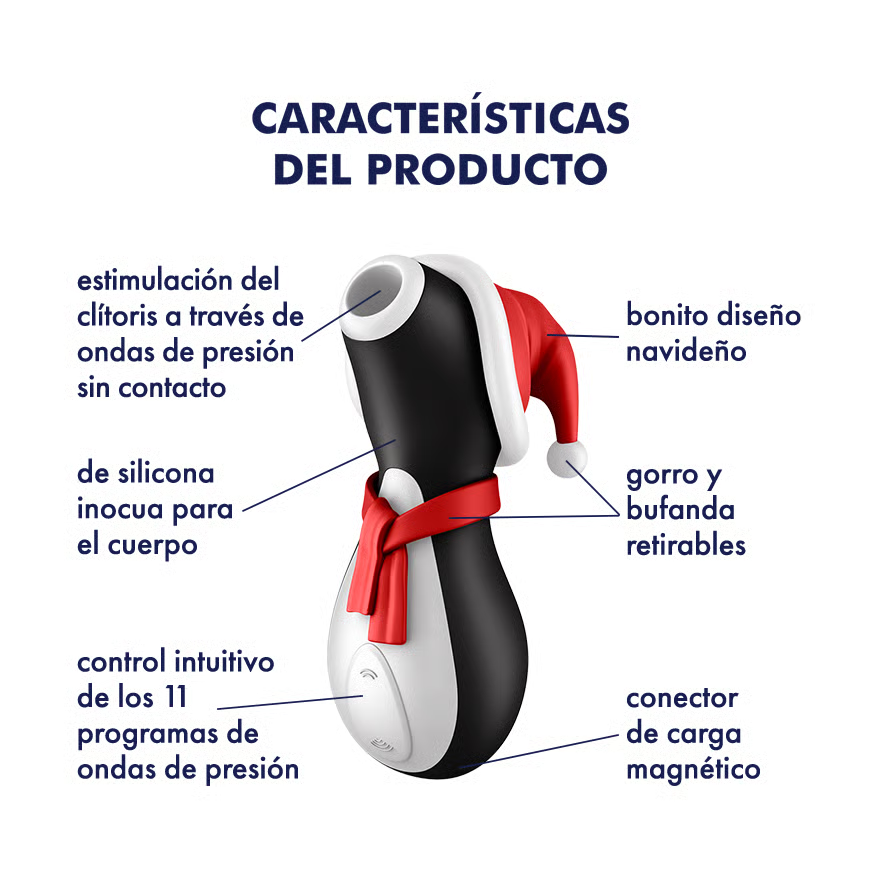 Los duendes de la Navidad tienen mucho que hacer este año y por eso el Satisfyer Penguin Holiday Edition les libera de algunas de sus tareas, ¡y les ayudan a repartir alegría! Con tecnología Air Pulse listo para hacer sonar tus campanas.